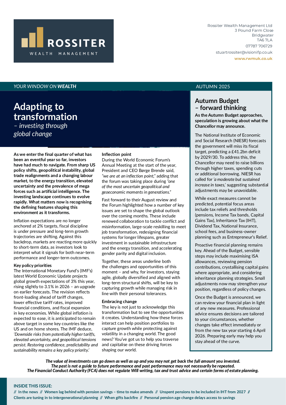 You are about to leave the website of Rossiter Wealth Management Ltd and view the content of an external website. Rossiter Wealth Management Ltd cannot be held responsible for the content of external websites.